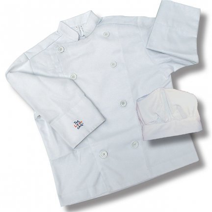 - Classically styled white chef's jacket and hat are made from a machine washable, cotton/polyester blend for easy care